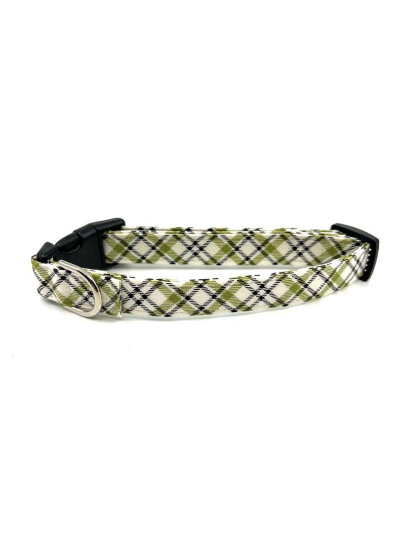 Christmas Green Avocado Black Plaid Dog Collar- Add on Bow Tie