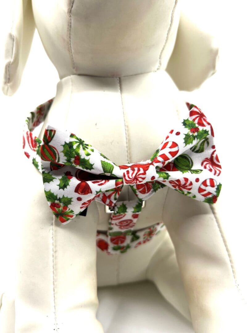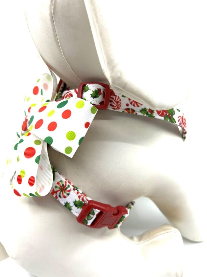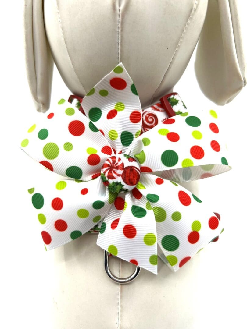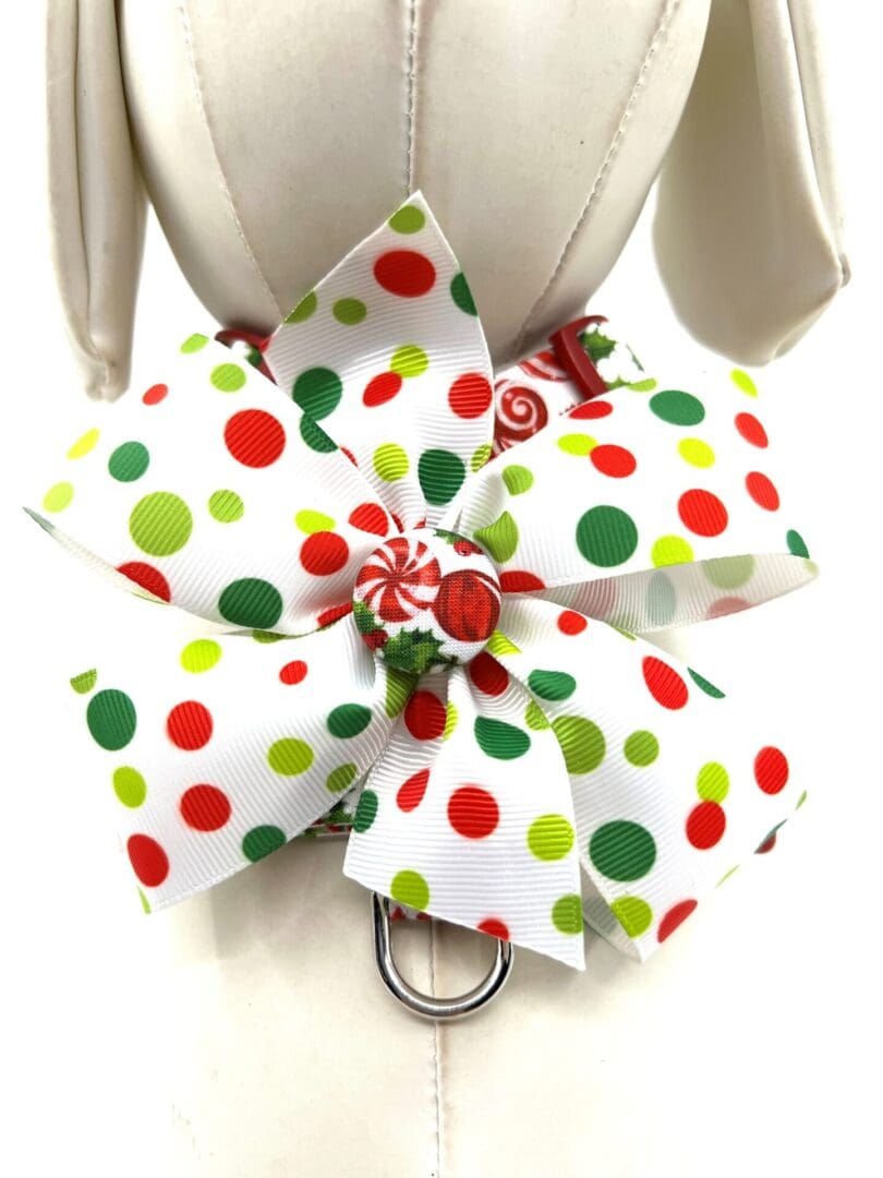 Christmas Red Green Peppermint Dog Harness- Add on Removable Polka Dot Bow- Bow Tie- Korker Bow