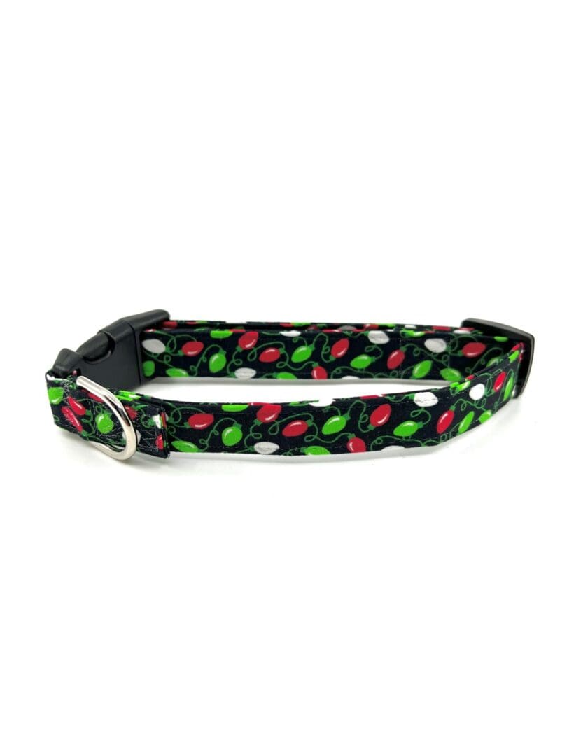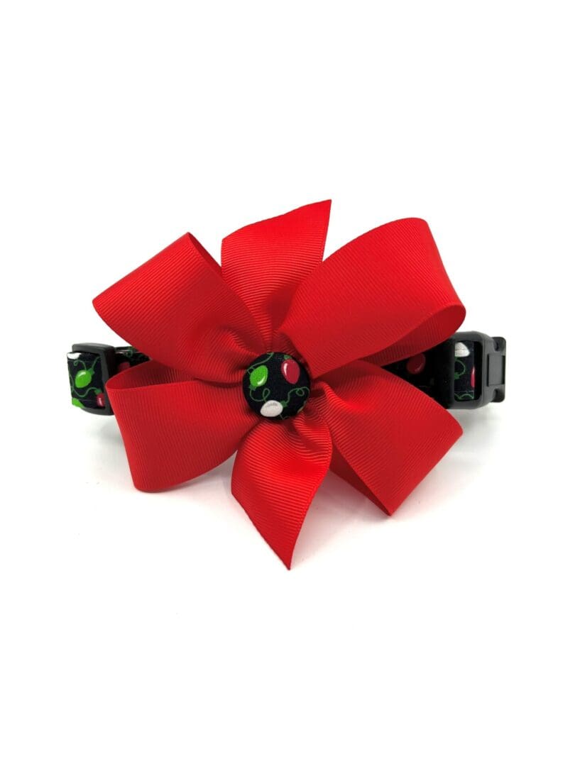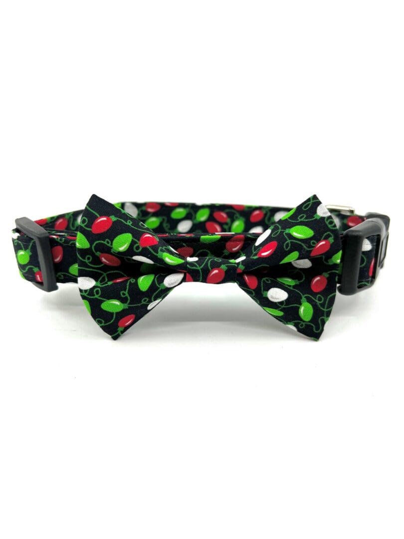 Christmas Red Lime Green Christmas Lights Red Bow Dog Collar- Add on Removable Bow or Bow Tie