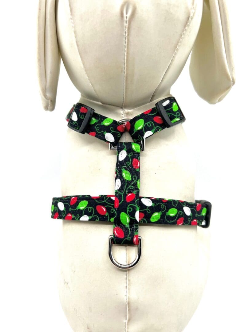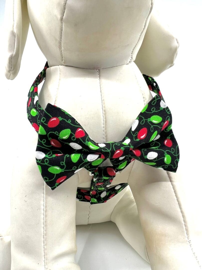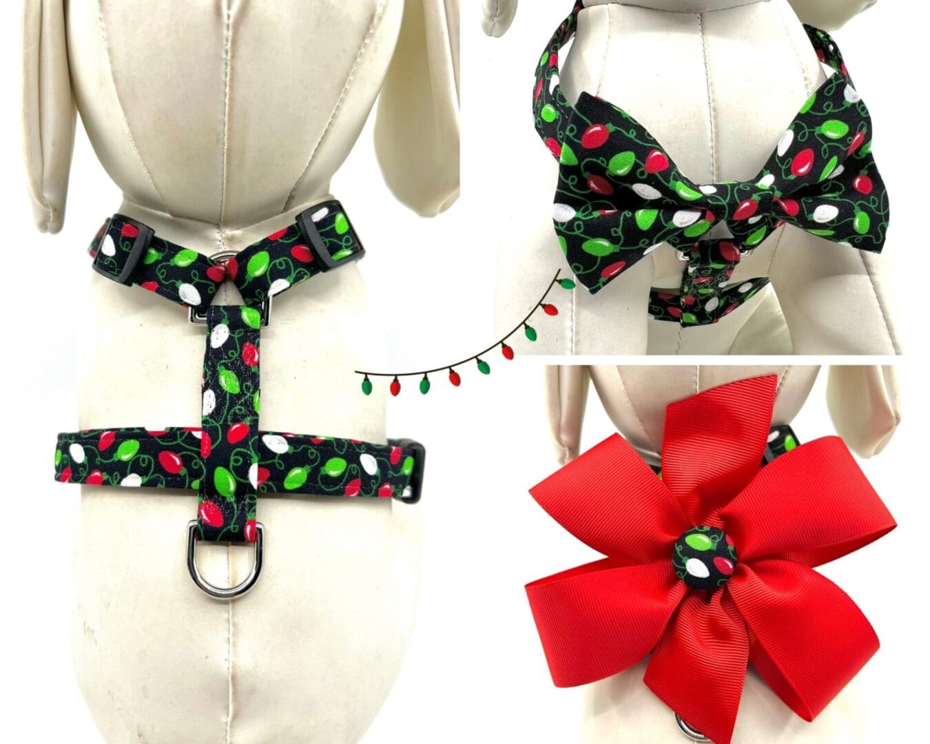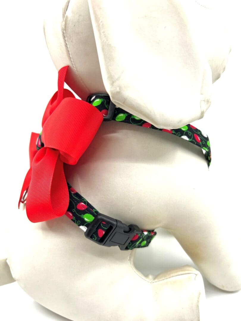 Christmas Red Lime Green Christmas Lights Red Bow Dog Harness- Add on Removable Bow or Bow Tie