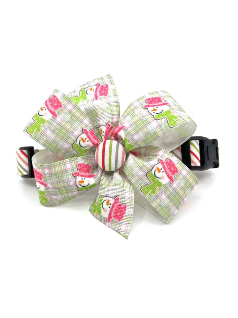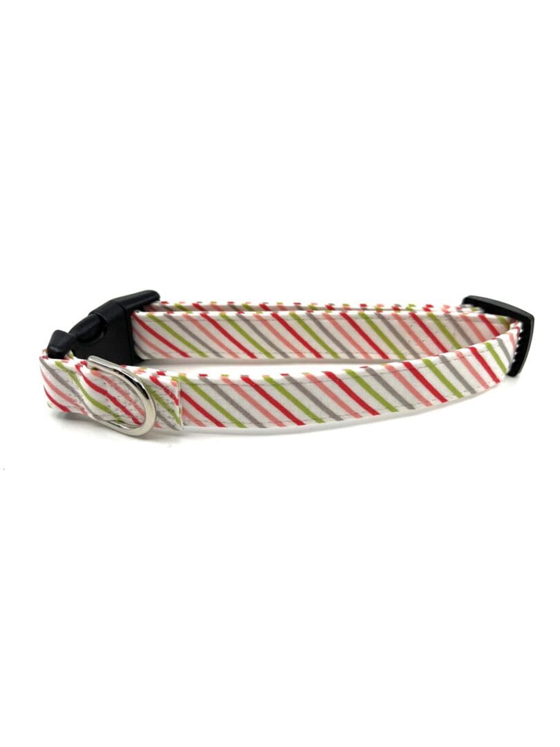 Christmas Striped Red Green Pink Dog Collar- Add on a Removable Bow