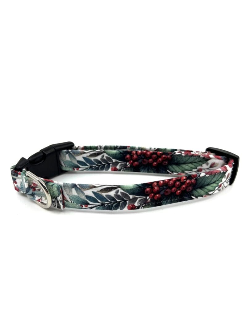 Christmas Vintage Burgundy Green Blue Berries Dog Collar- Add on Bow or Korker Bow