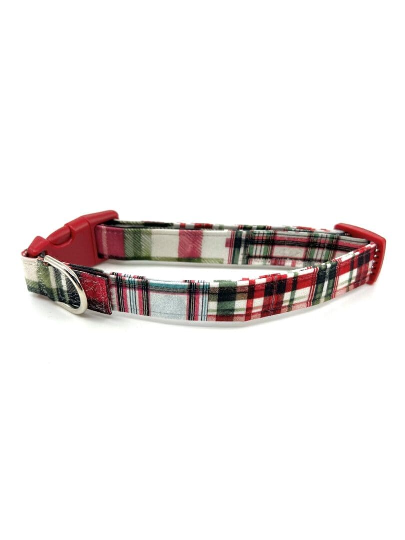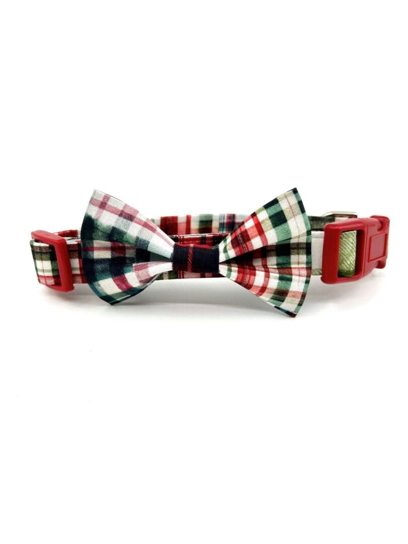 Christmas Vintage Burgundy Green Blue Plaid Dog Collar- Add on Bow Tie