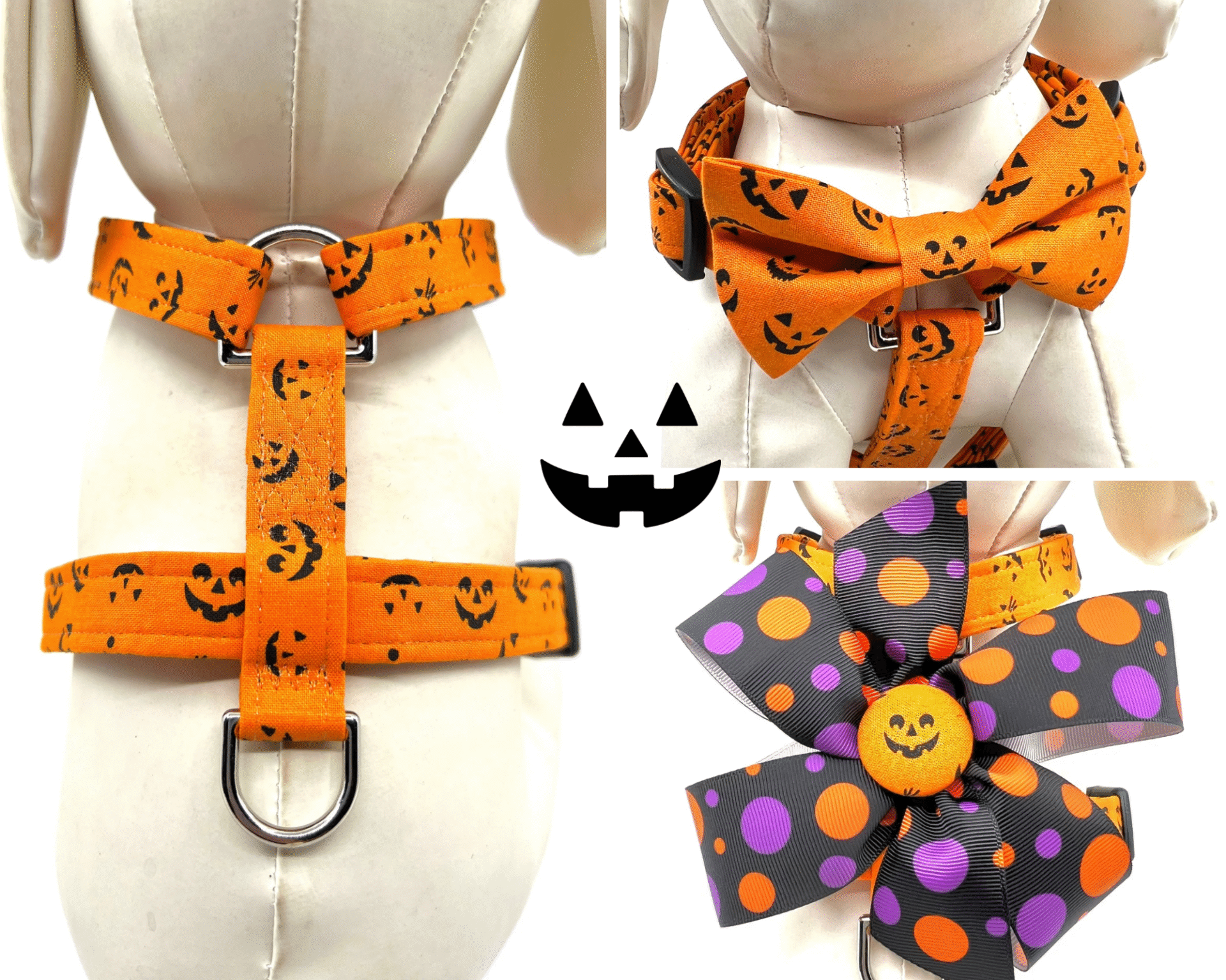 Fall Halloween Adjustable Harness-Choice of add on Bow- Bow Tie