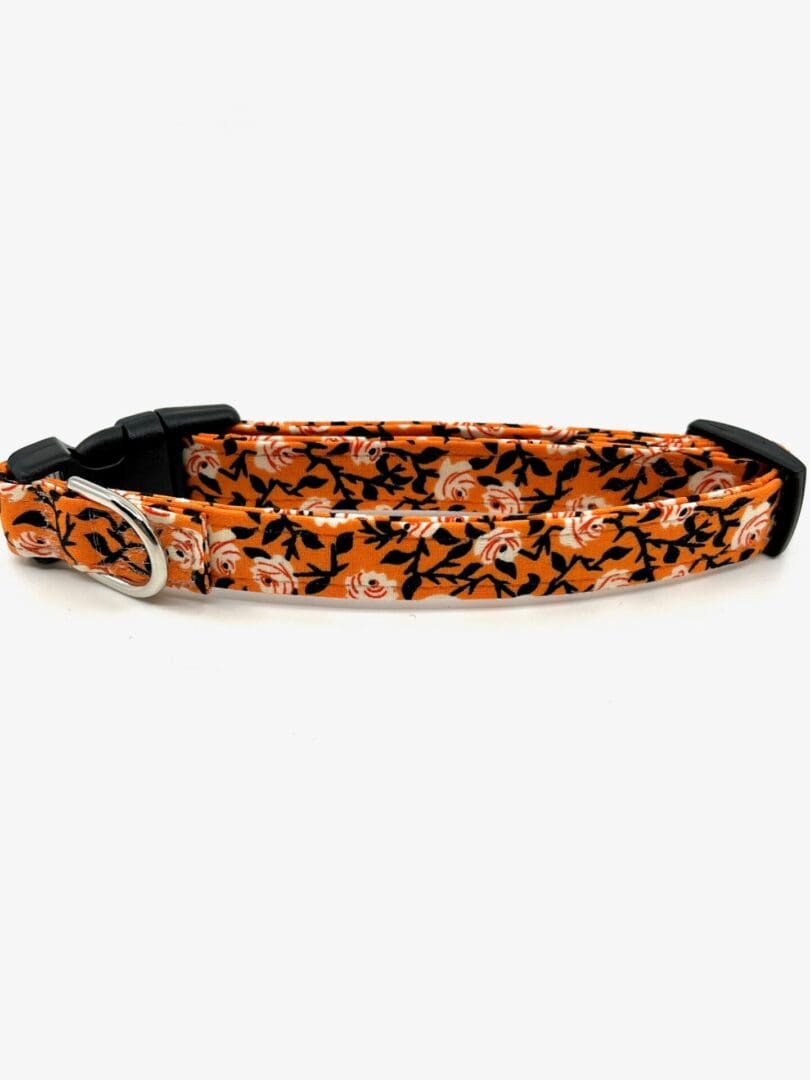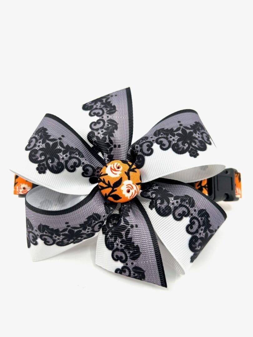 Fall Halloween Orange Black Floral Lace Dog Collar- Add on a Removable Bow