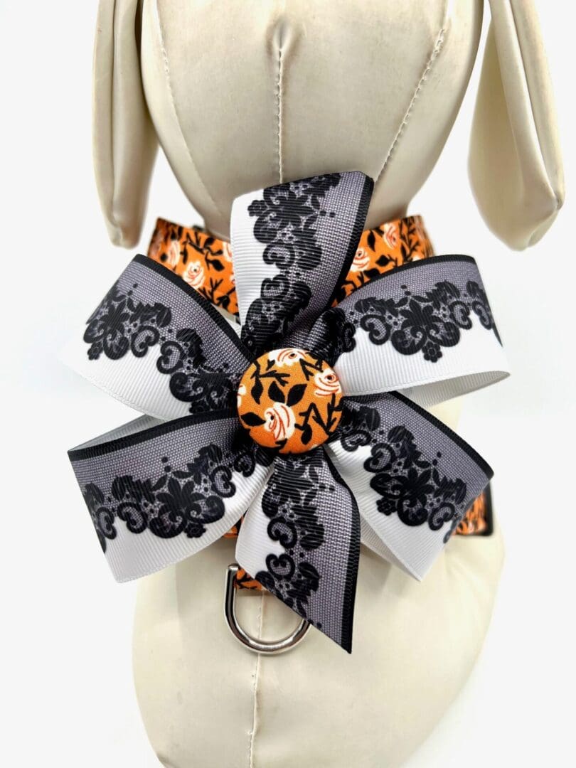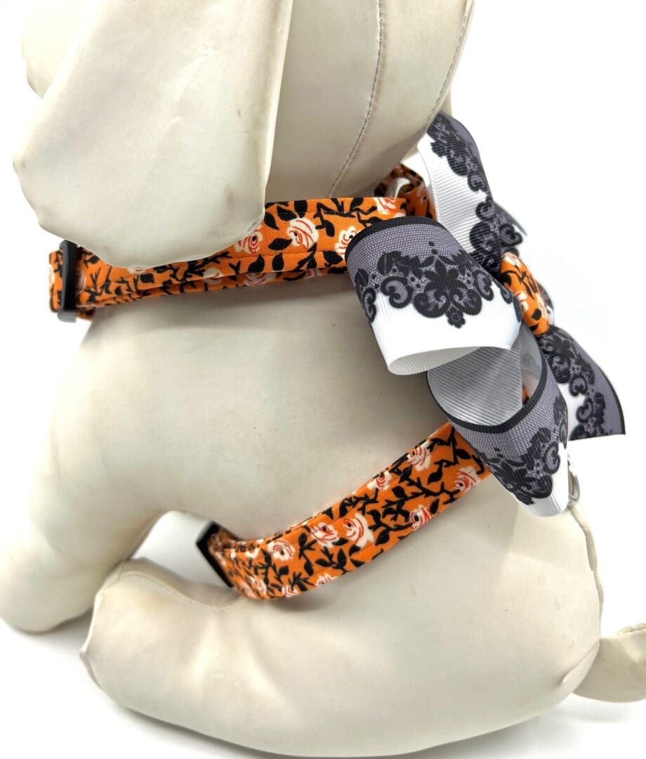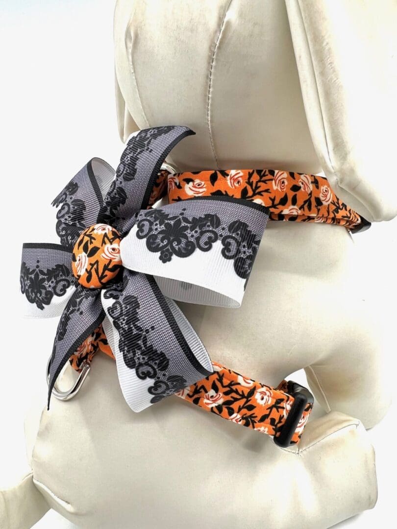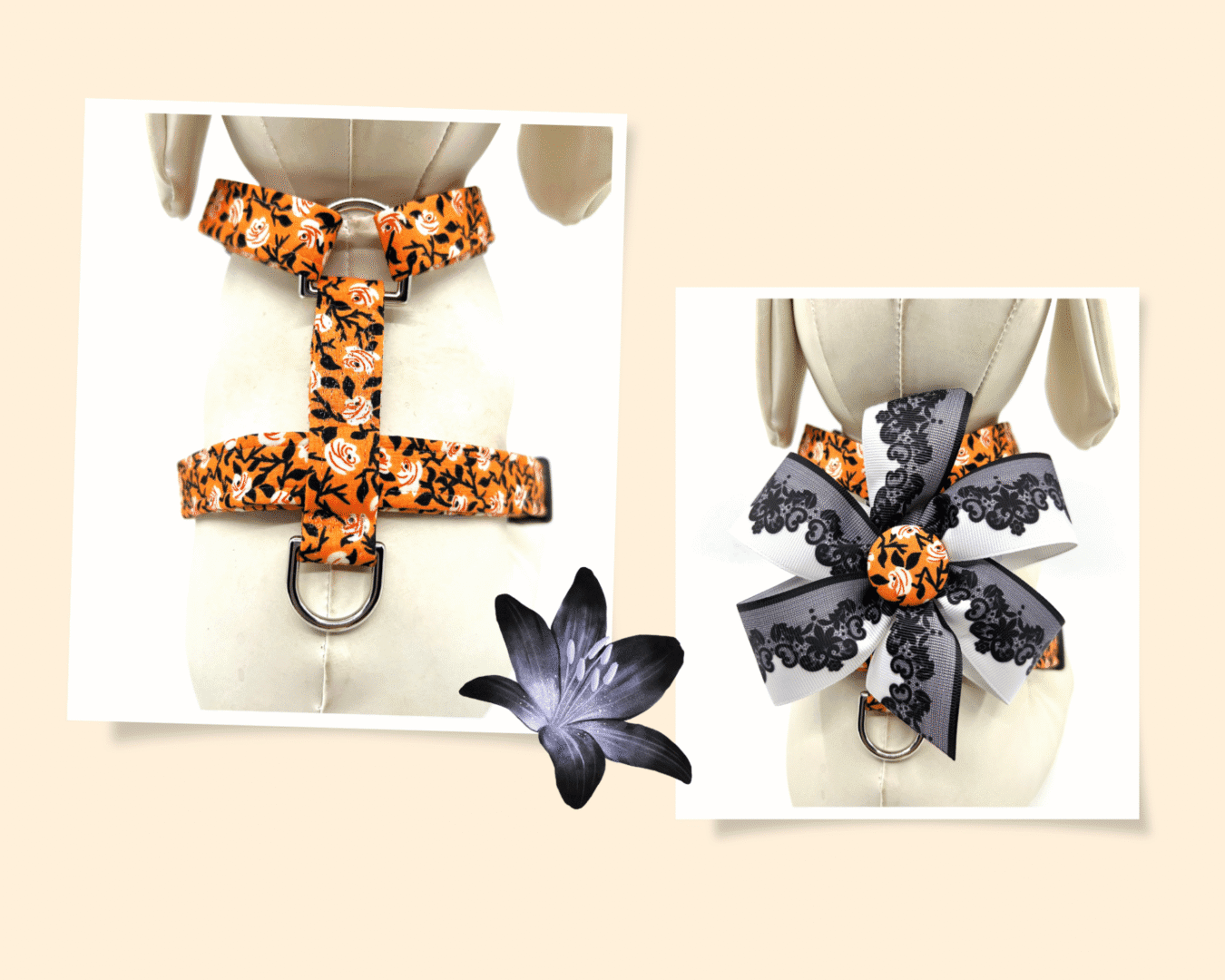 Fall Halloween Orange Black Floral Lace Dog Harness- Add on a Removable Bow