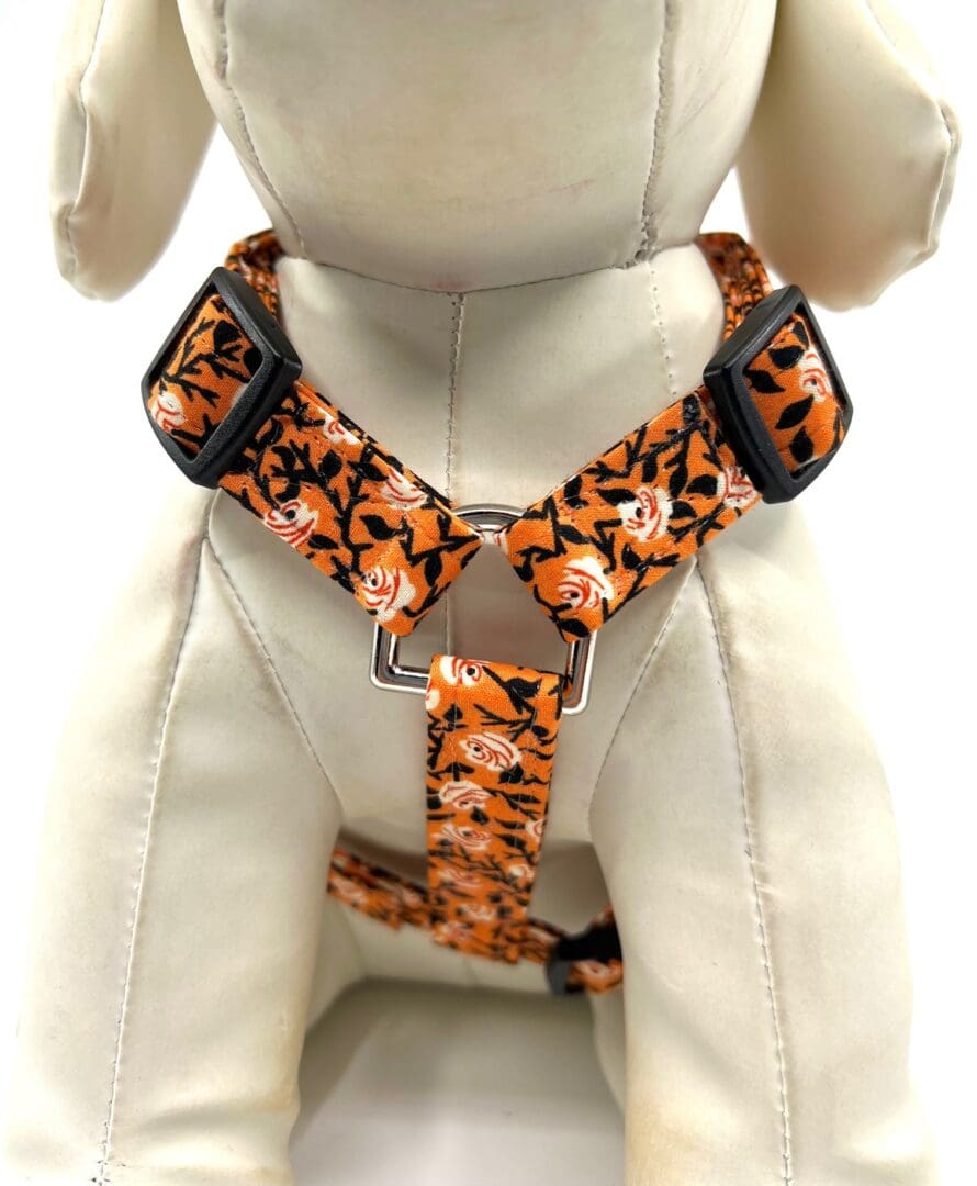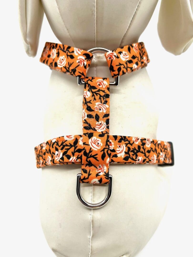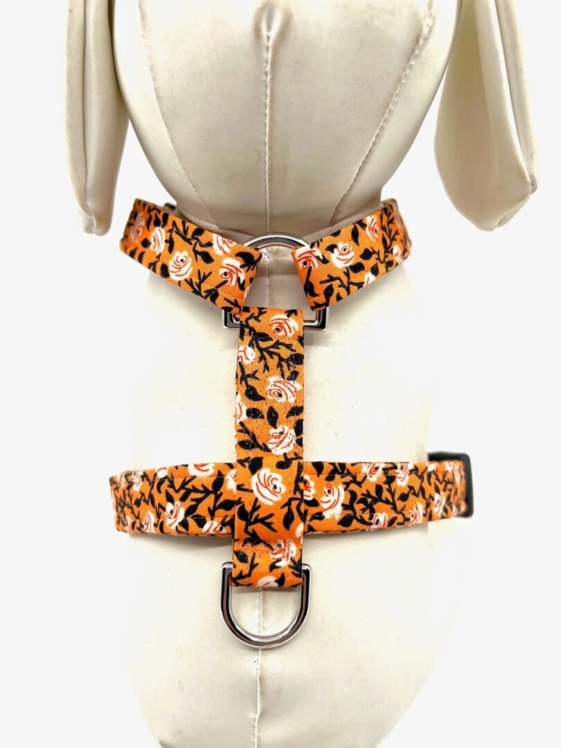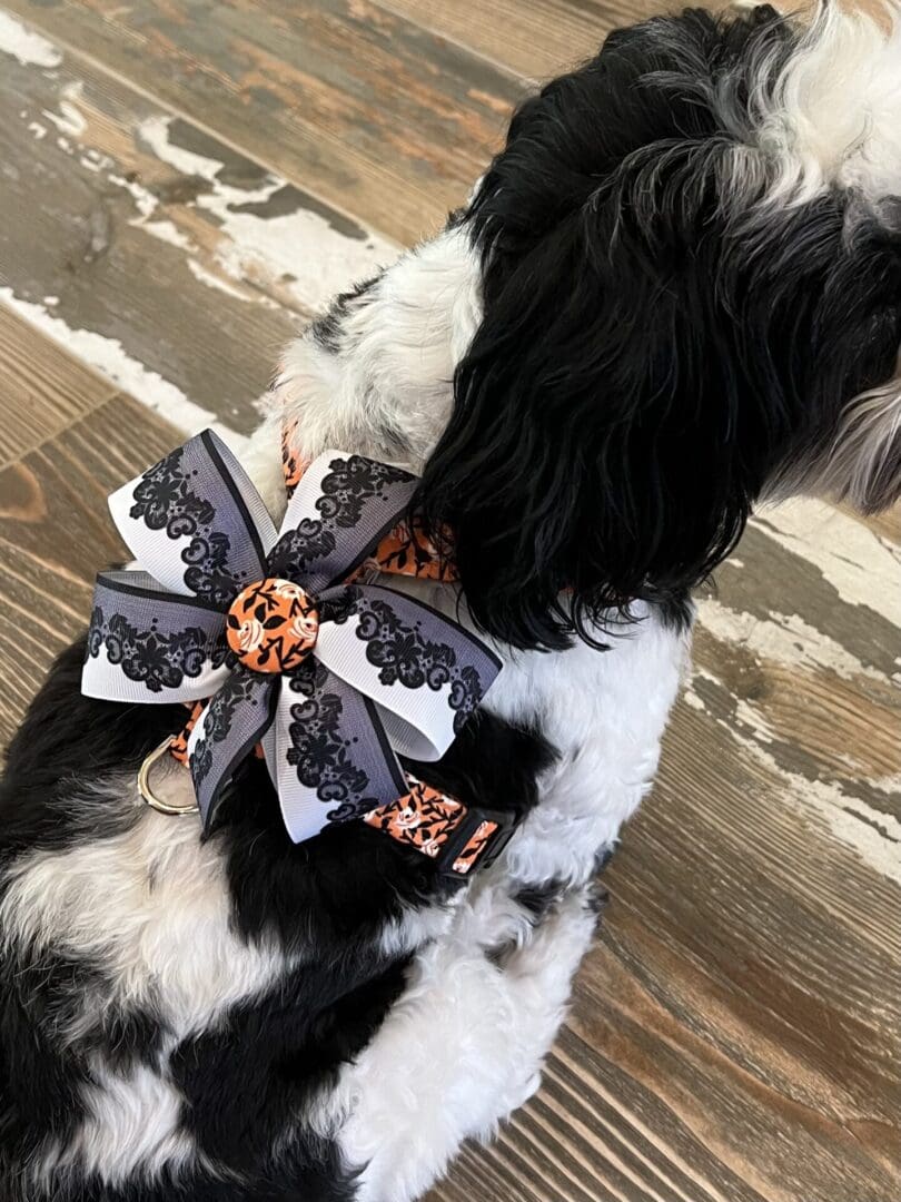 Fall Halloween Orange Black Floral Lace Dog Harness- Add on a Removable Bow