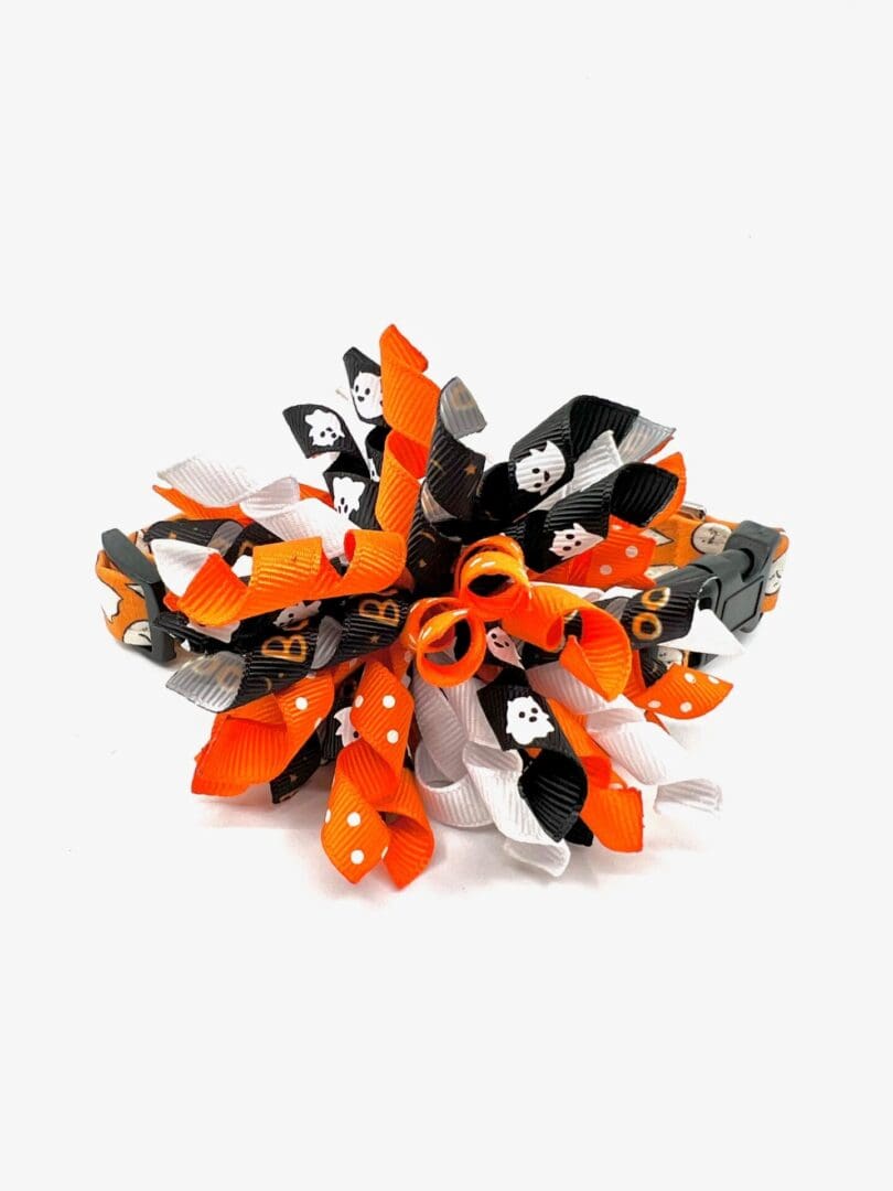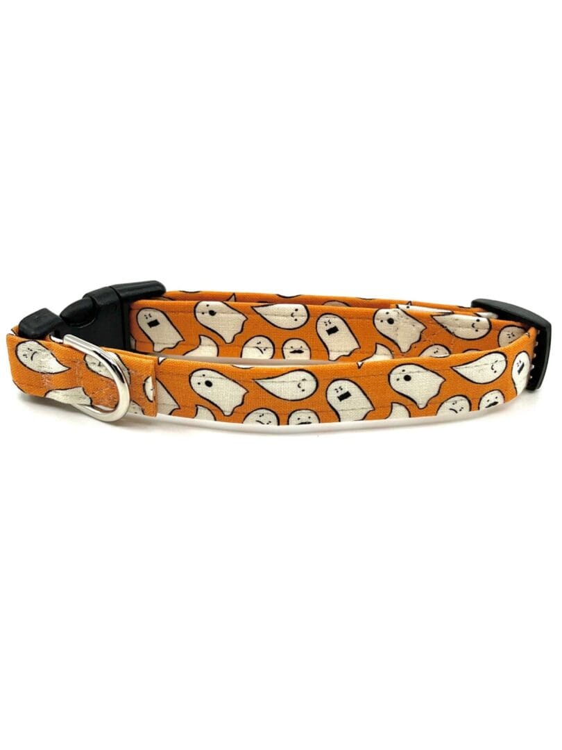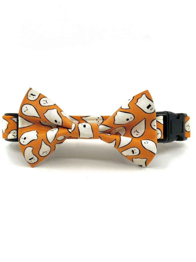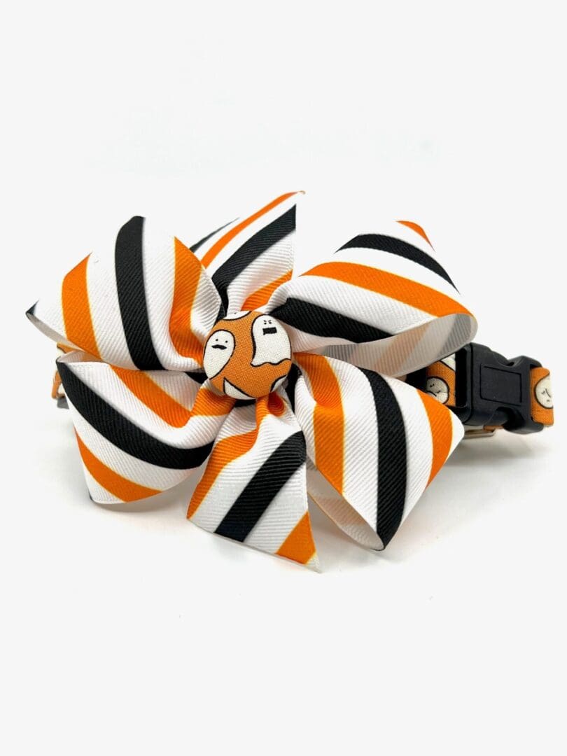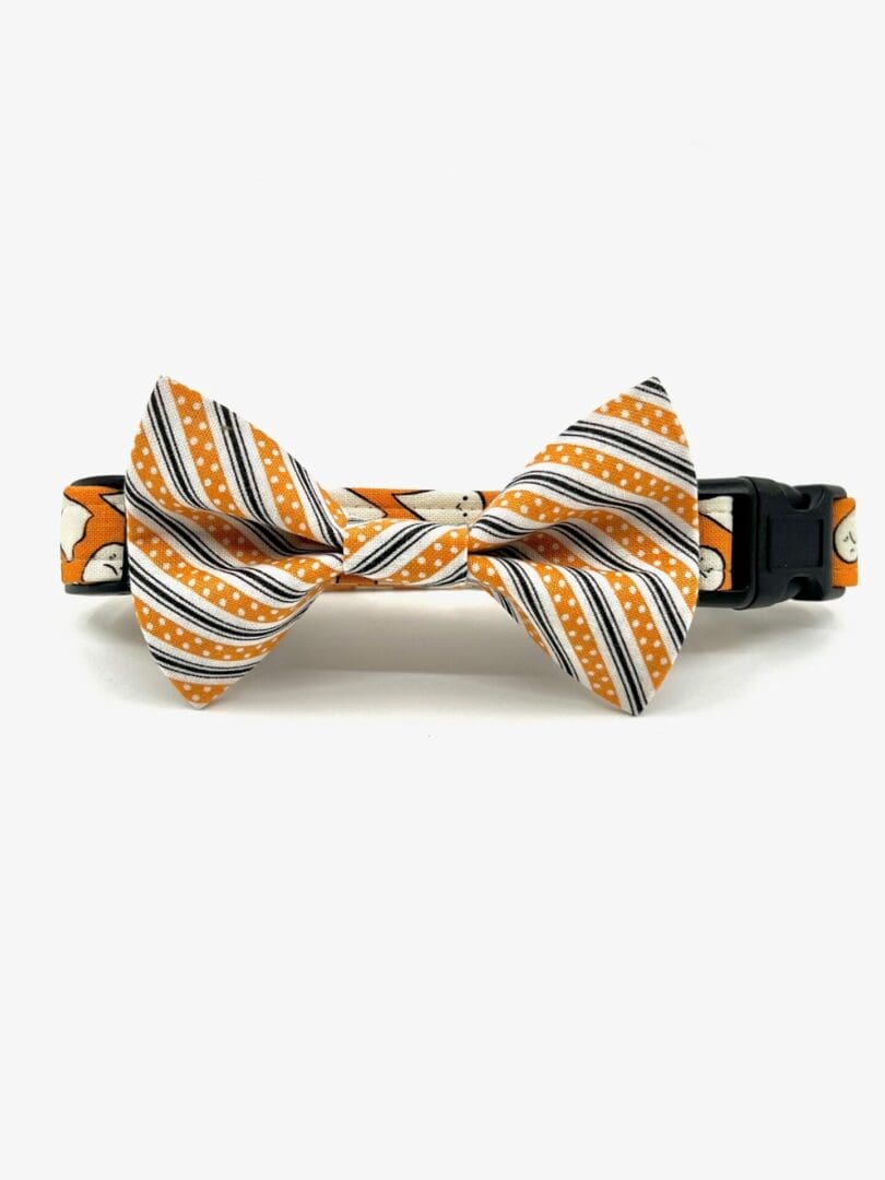 Fall Halloween Orange Black Ghost Stripes Dog Collar- Add on Removable Bow- Bow Tie or Korker Bow