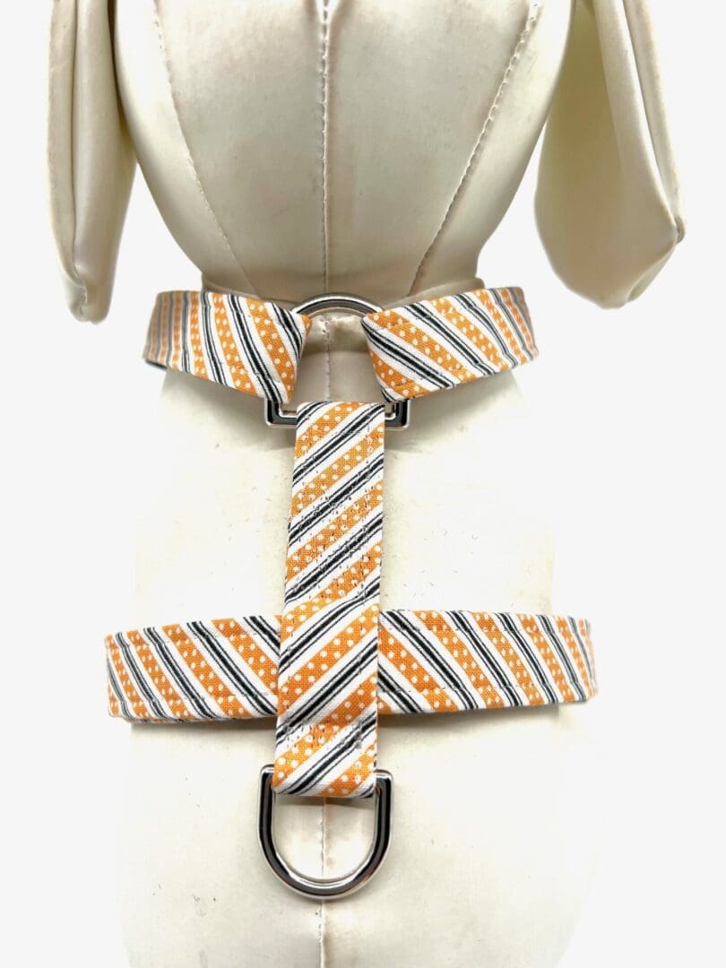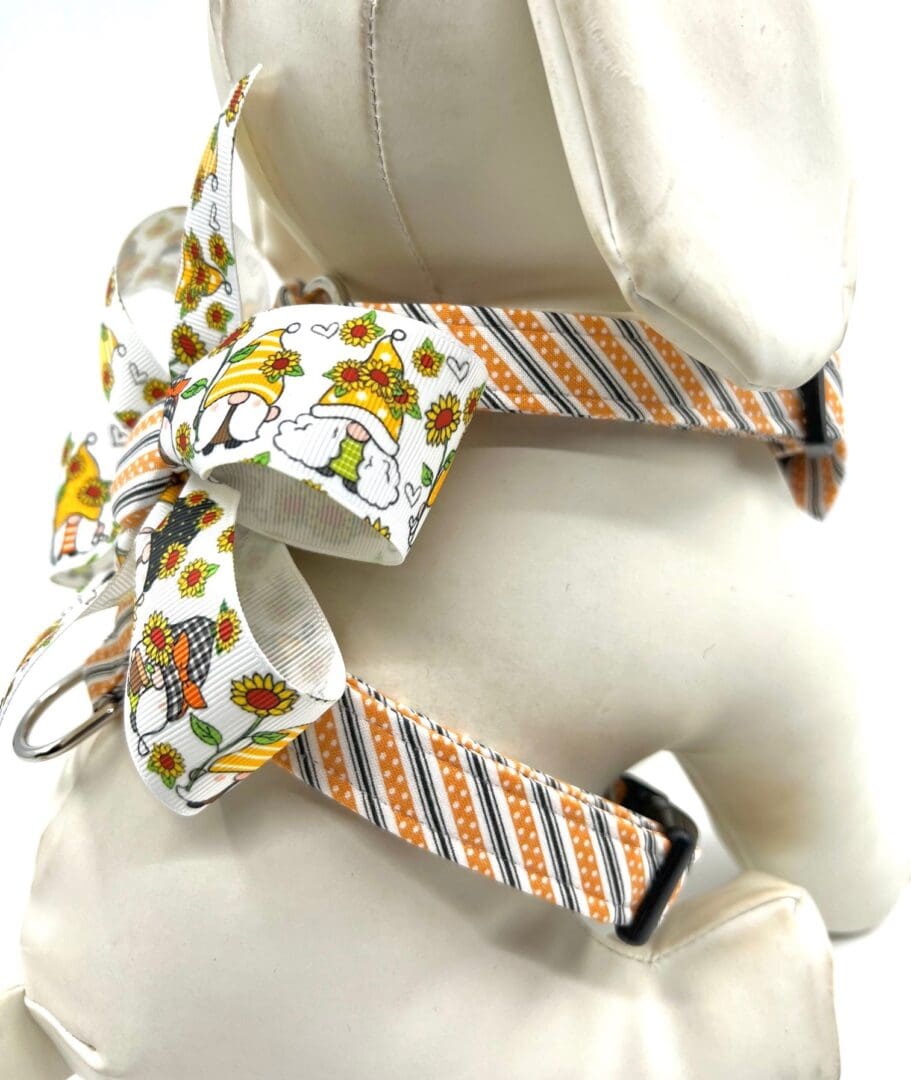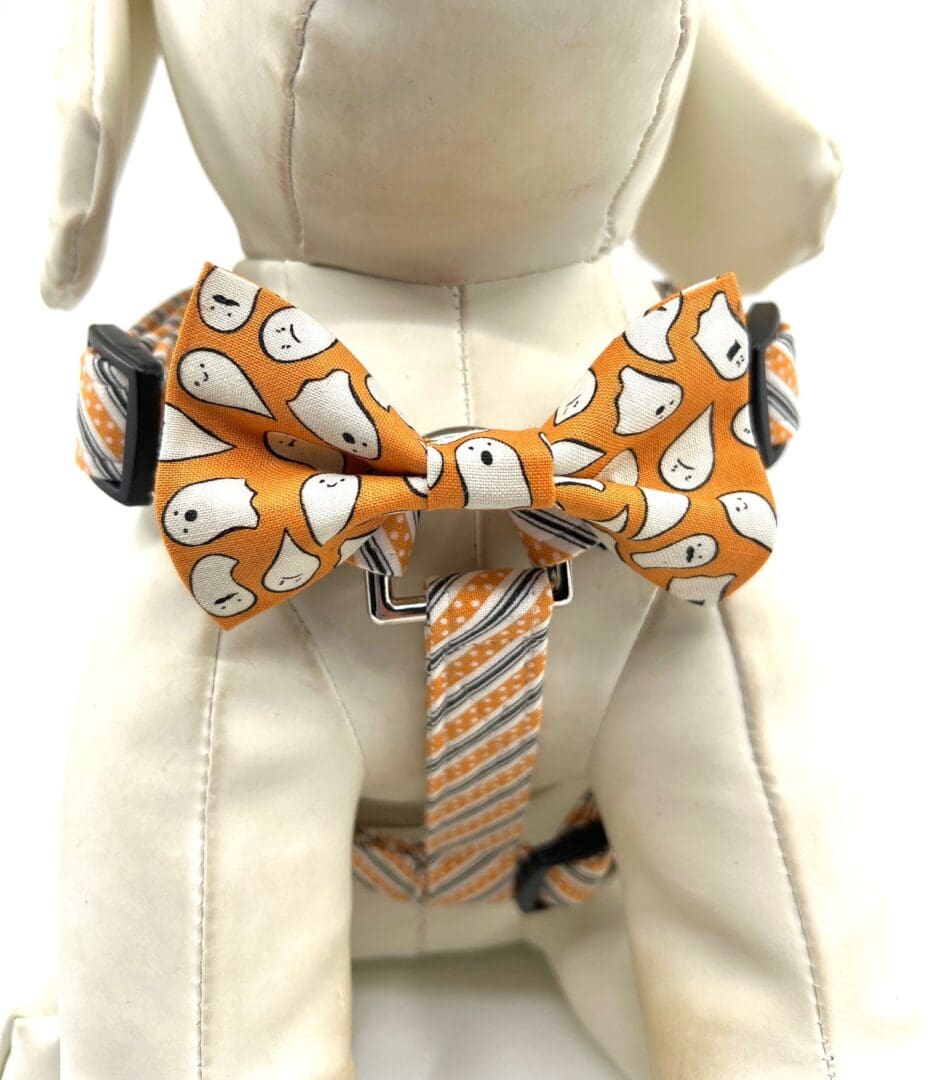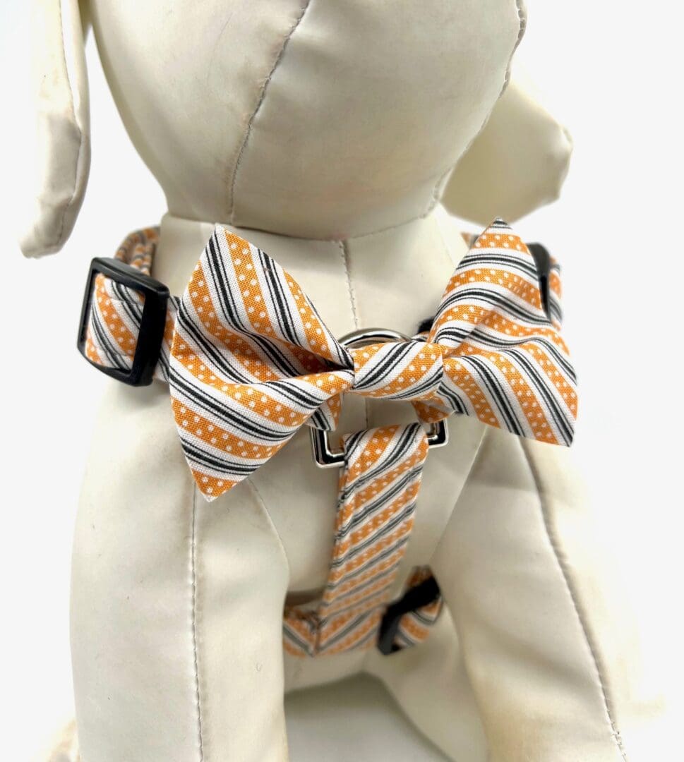 Fall Halloween Thanksgiving Black Orange Diagonal Stripe Orange Dots Gnome Ghost Dog Harness- Add on Removable Bow or Bow Tie- Your Choice