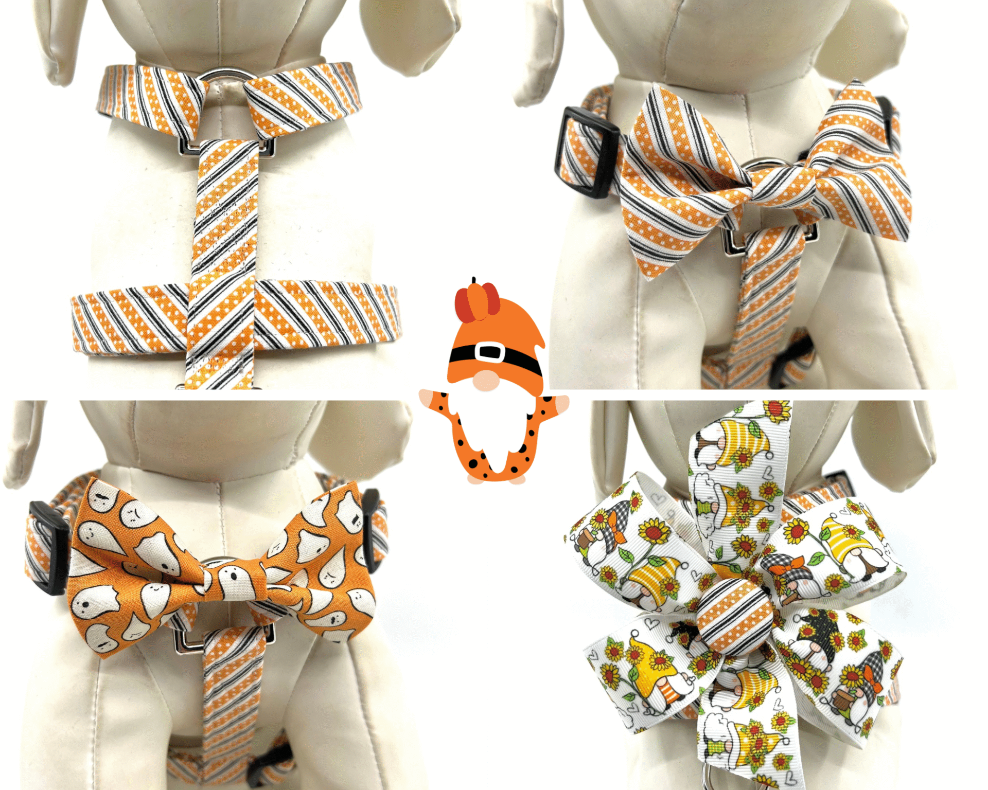 Fall Halloween Thanksgiving Adjustable Harness-Choice of add on Bow- Bow Tie