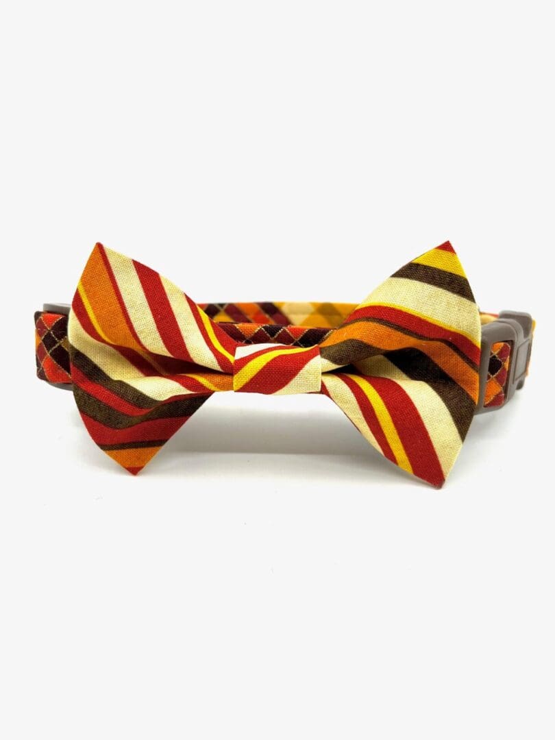 Fall Halloween Thanksgiving Striped Dog Collar- Add on Turkey, Leaves, Pumpkins Removable Bow or Striped Bow Tie