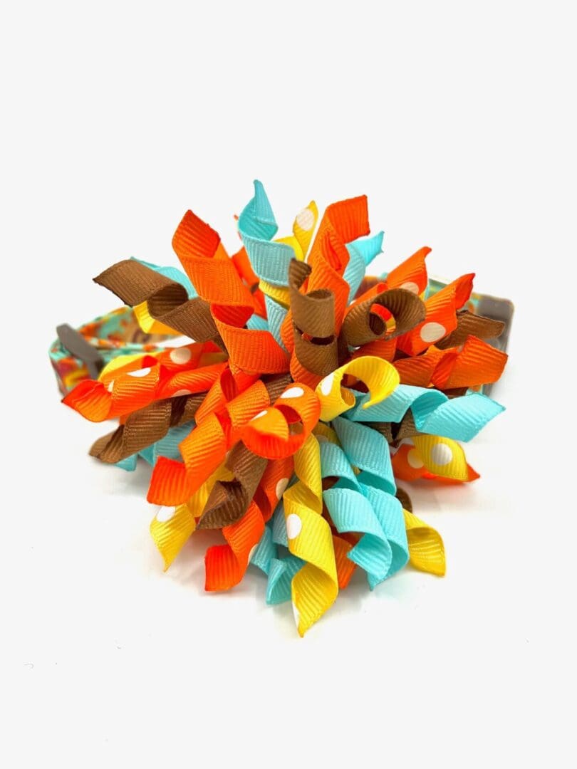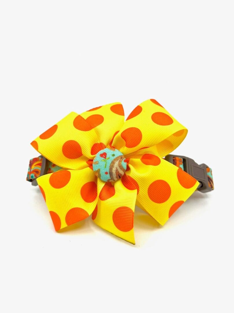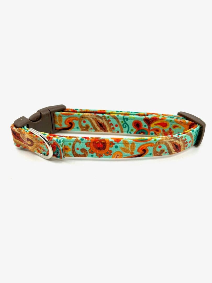 Fall Halloween Thanksgiving Teal Yellow Orange Brown Paisley Polka Dot Dog Collar- Add on Bow or Korker Bow