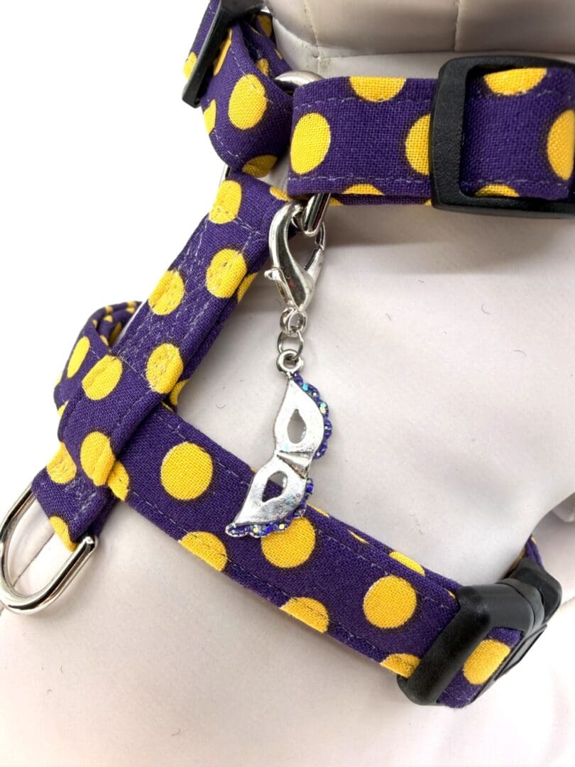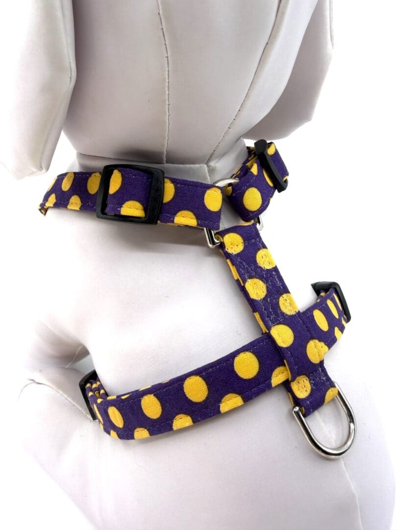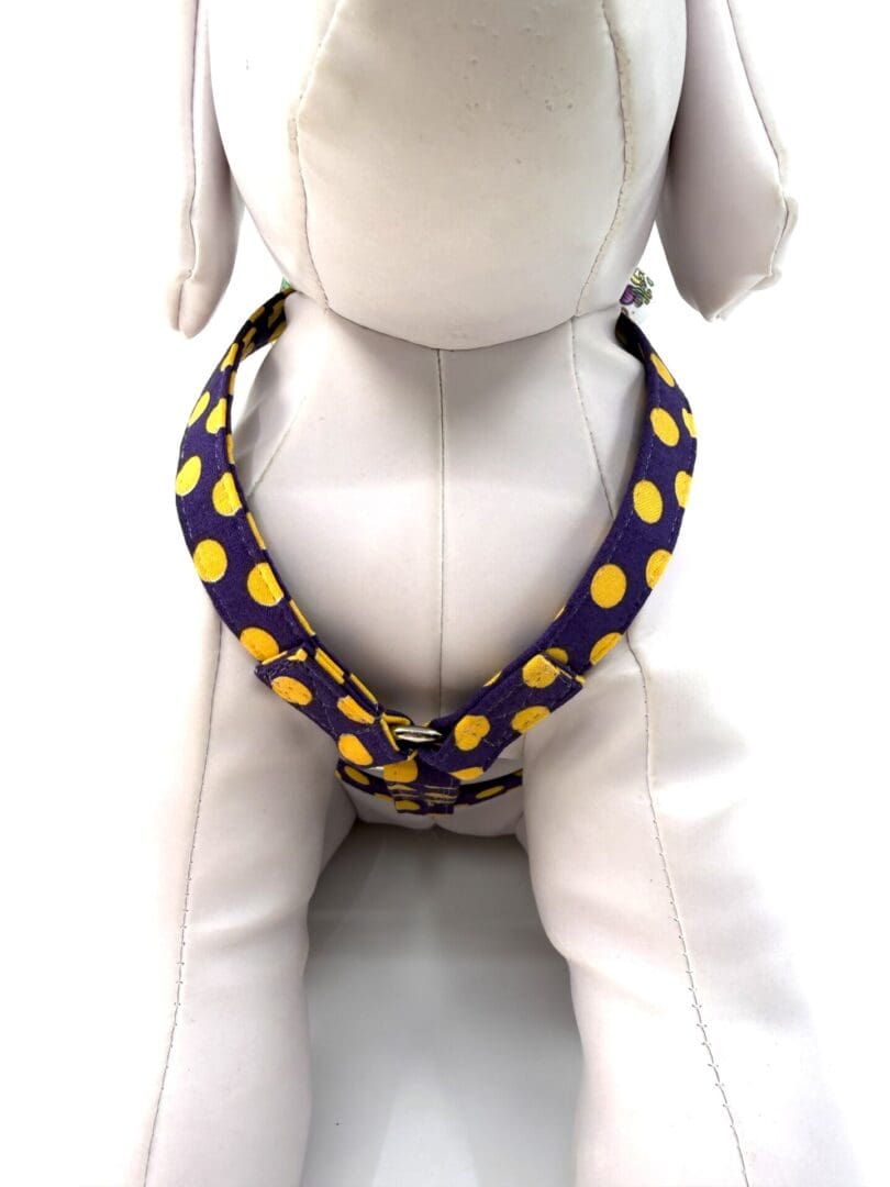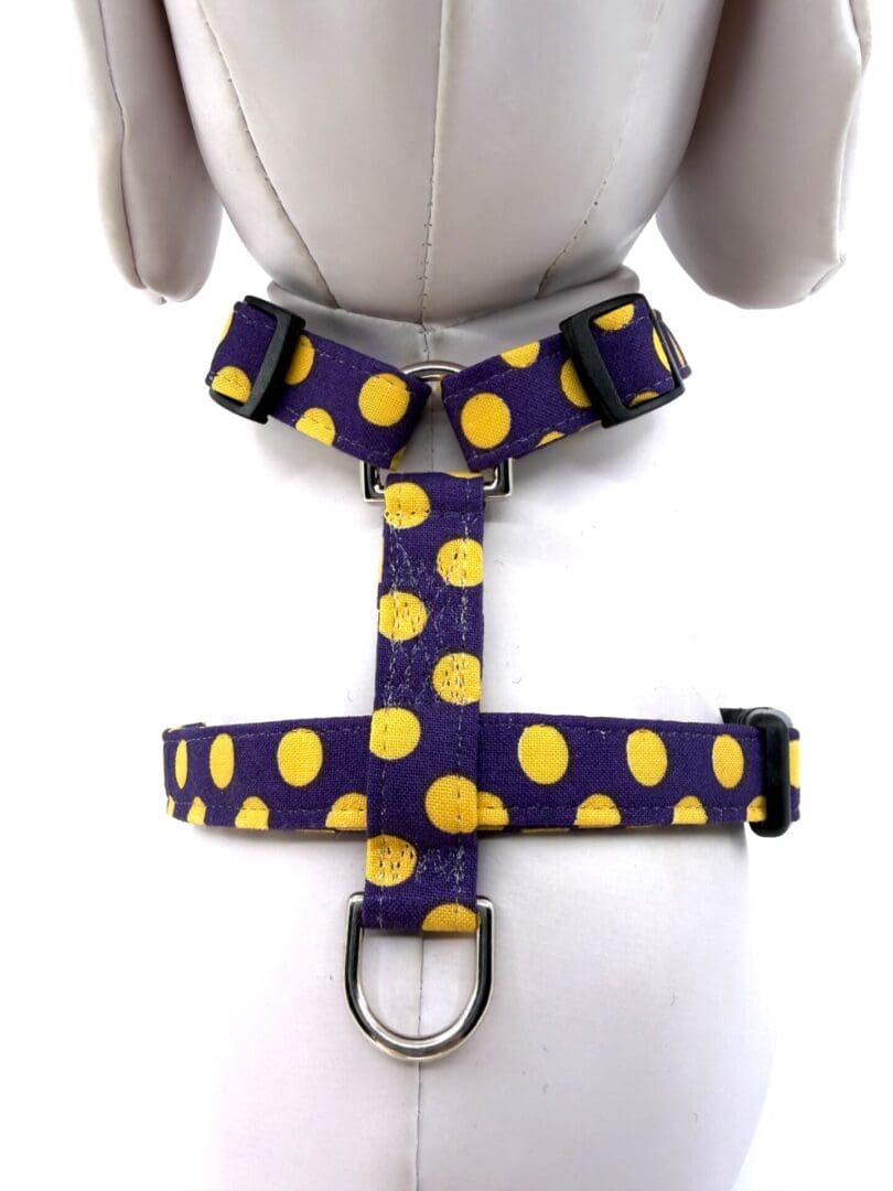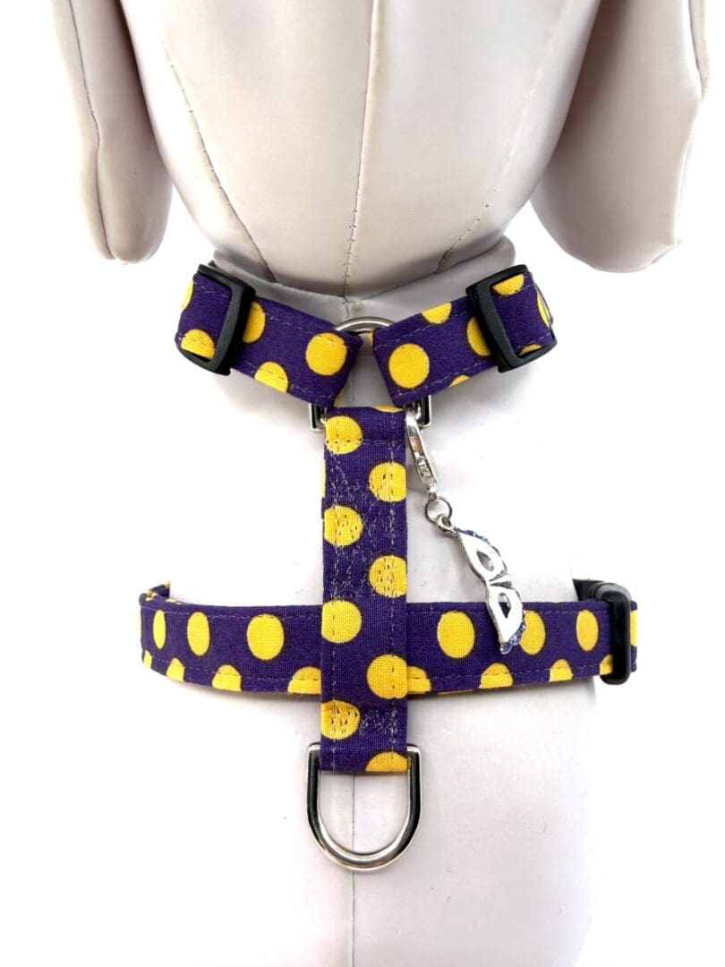 Purple and Gold Dots Adjustable Harness-Choice of add on Bow