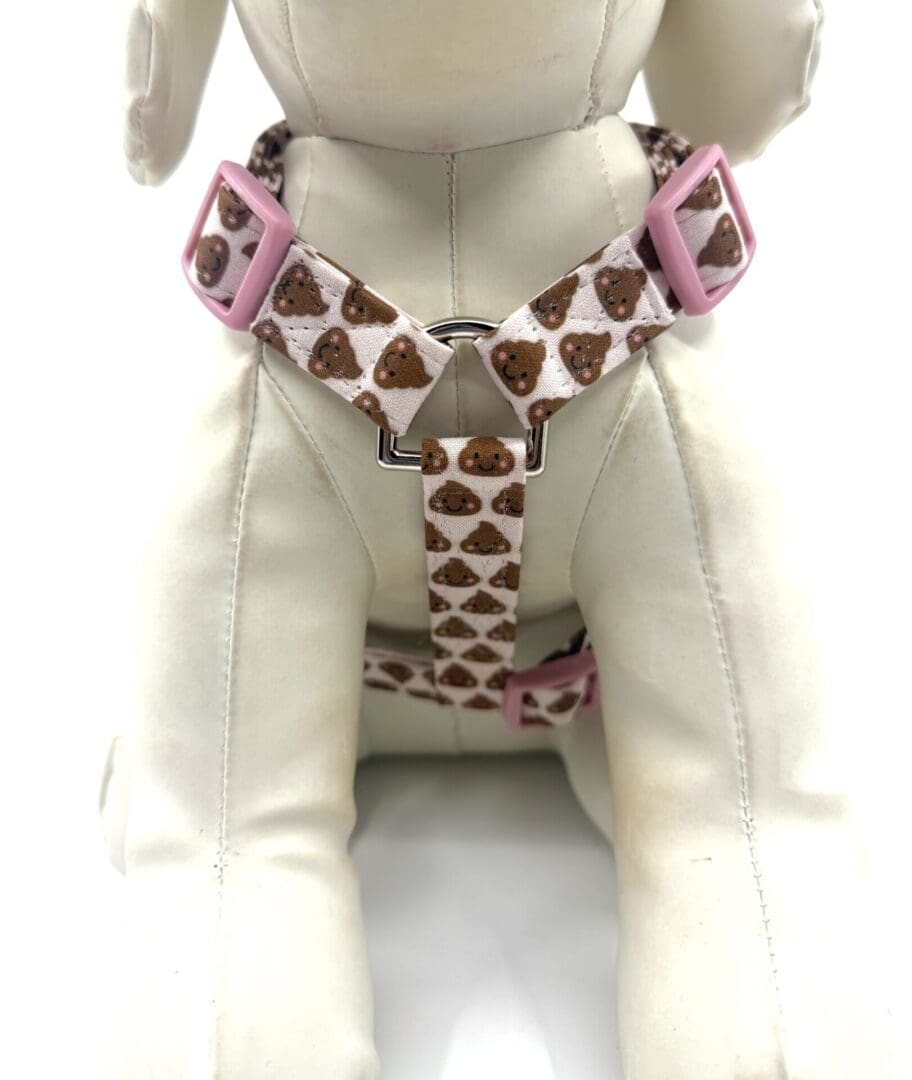 Poop Emoji Sticker Dog Harness- Pink, Blue or White- Add on Removable Bow or Bow Tie