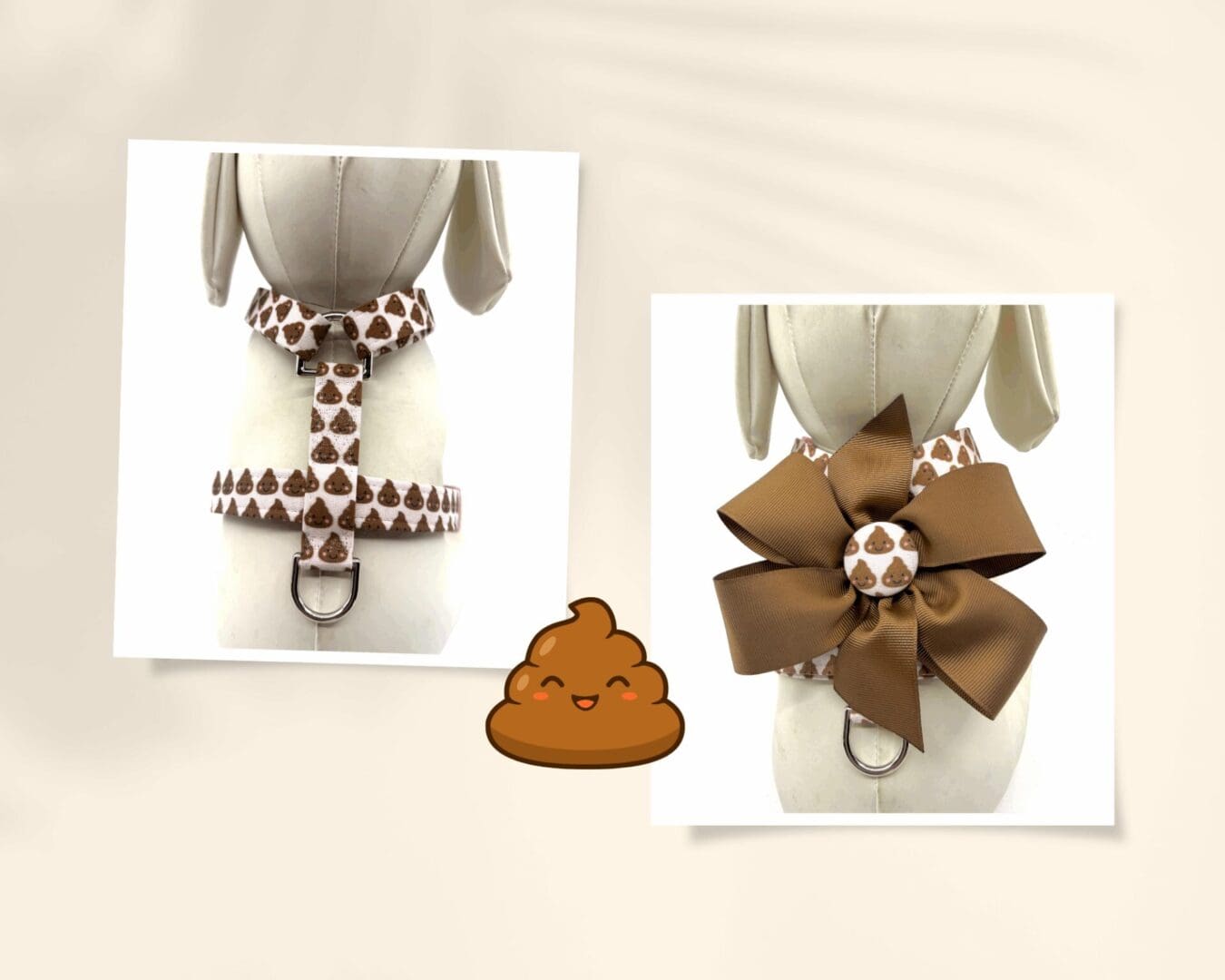 Poo emoji Adjustable Harness-Choice of add on Bow- Bow Tie