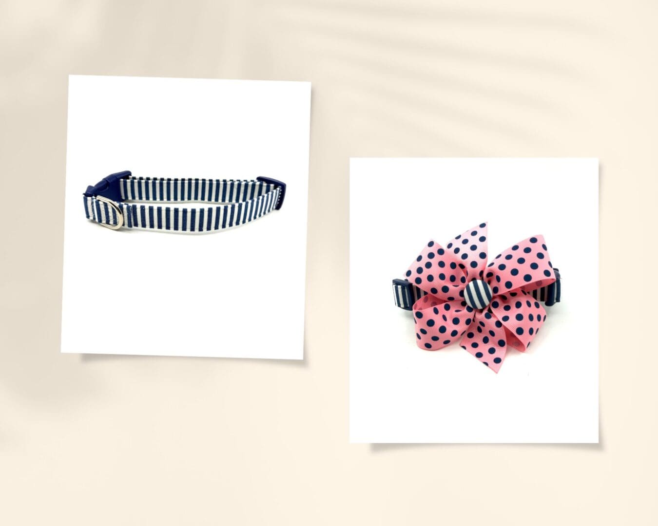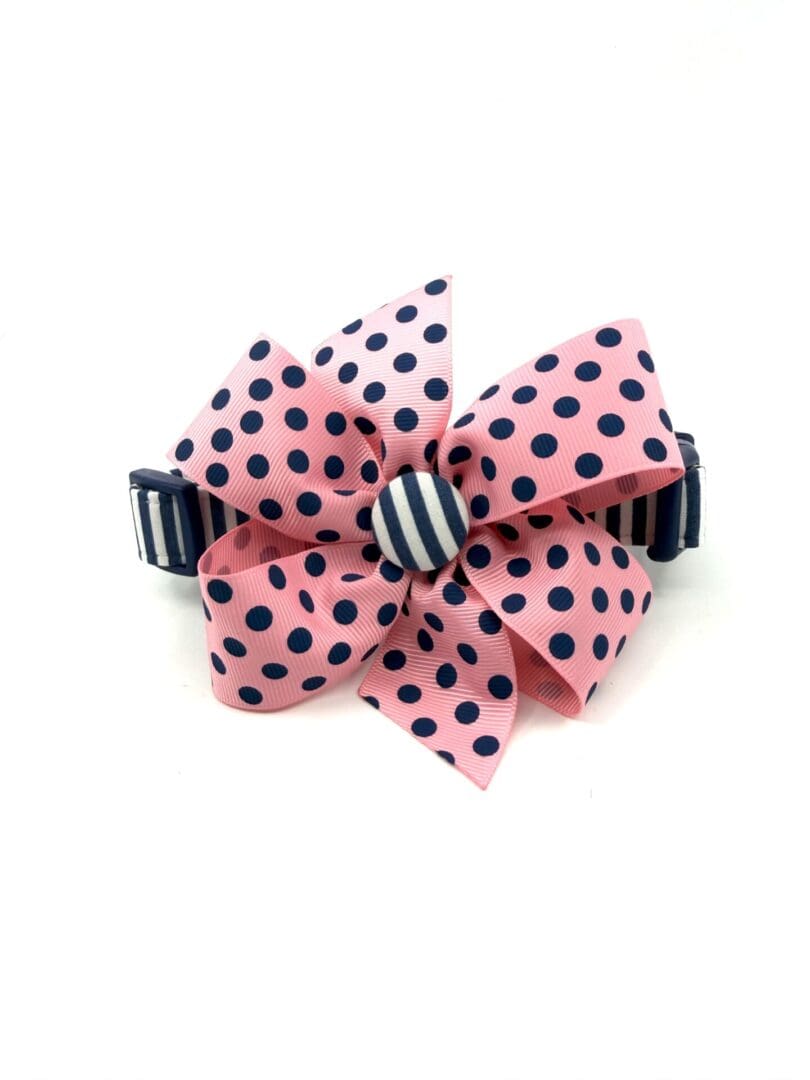 Spring Summer Navy White Striped Dog Collar- Add on a Removable Pink with Navy Polka Dots Bow