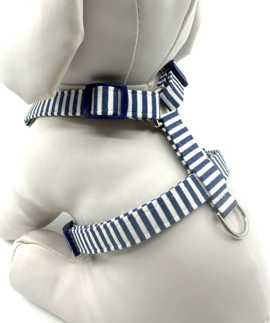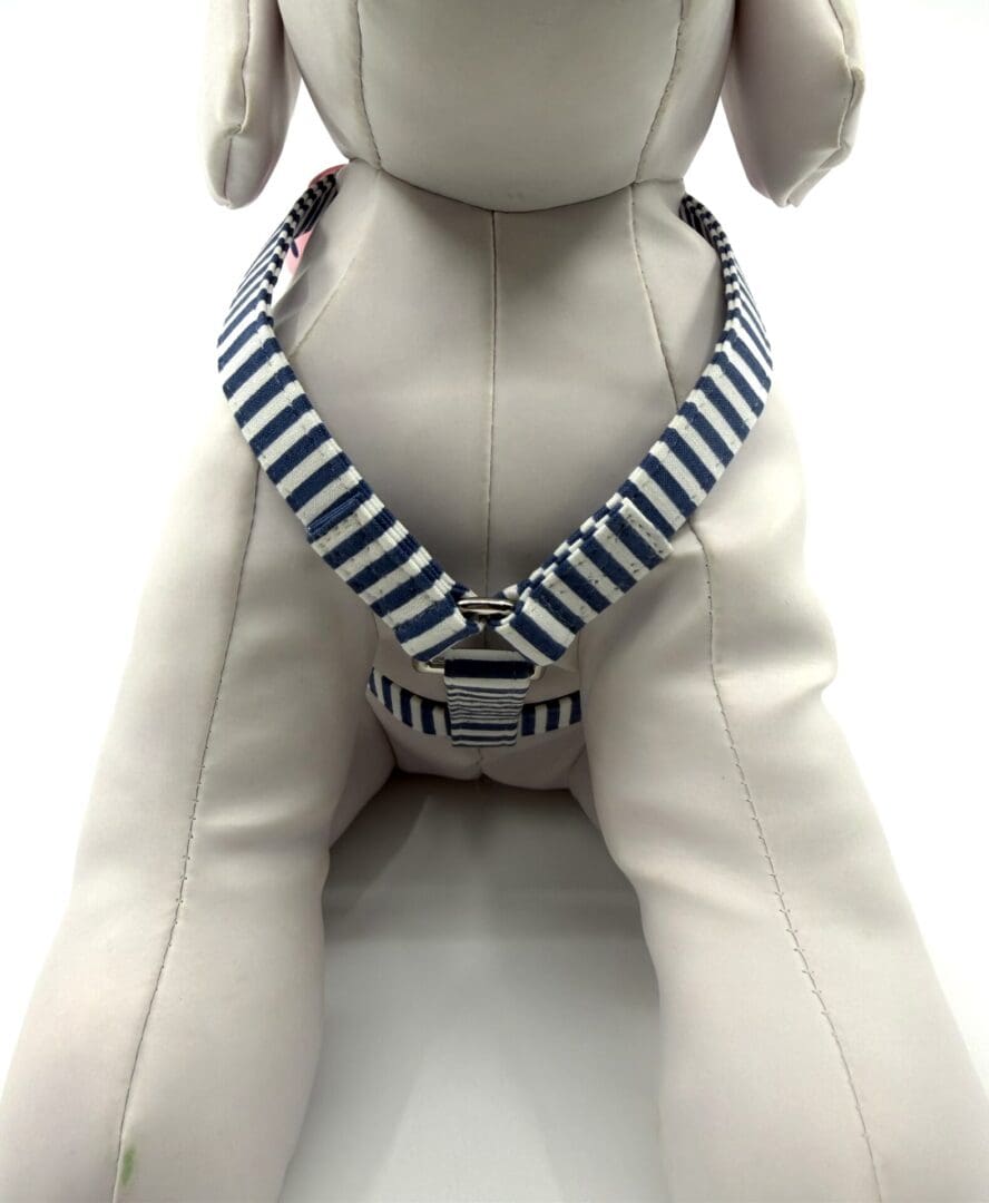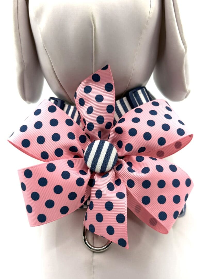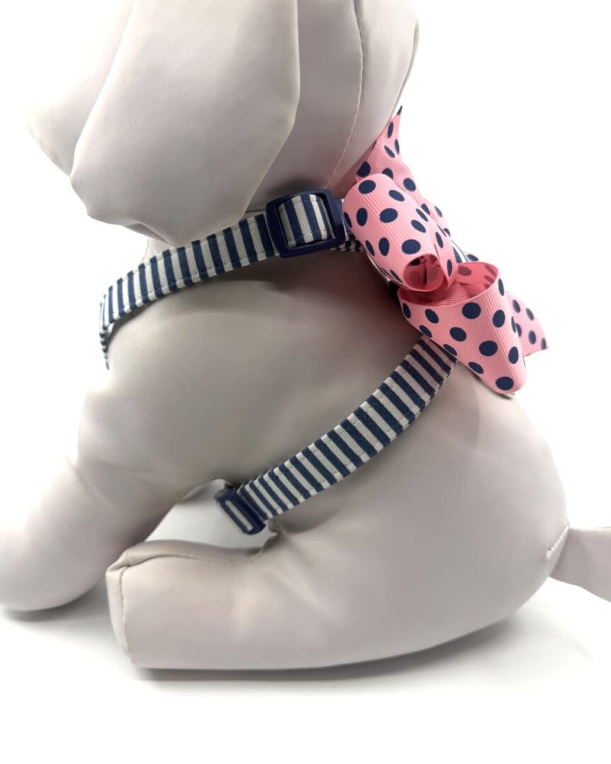 Be the first to review “Spring Summer Navy White Striped Dog Harness- Add on a Removable Pink and Navy Polka Dot Bow”