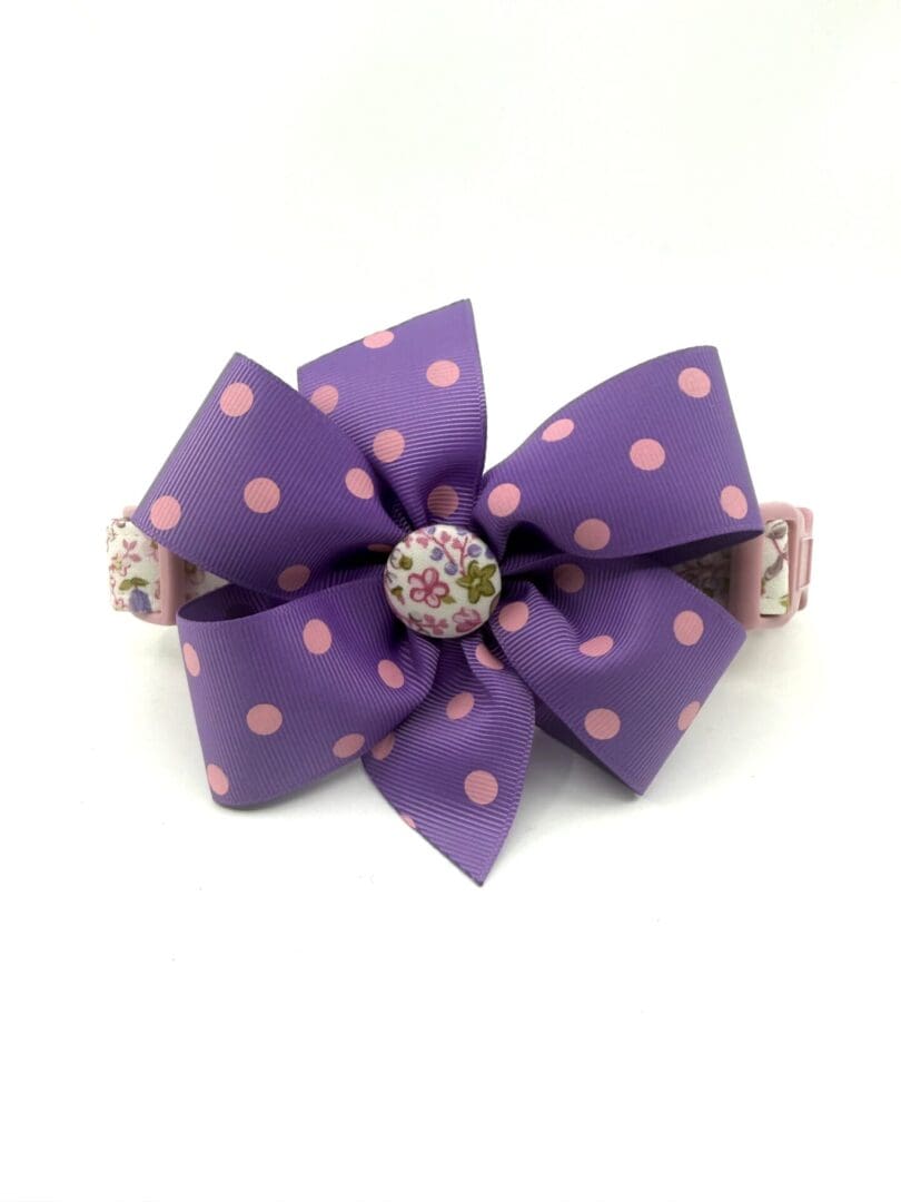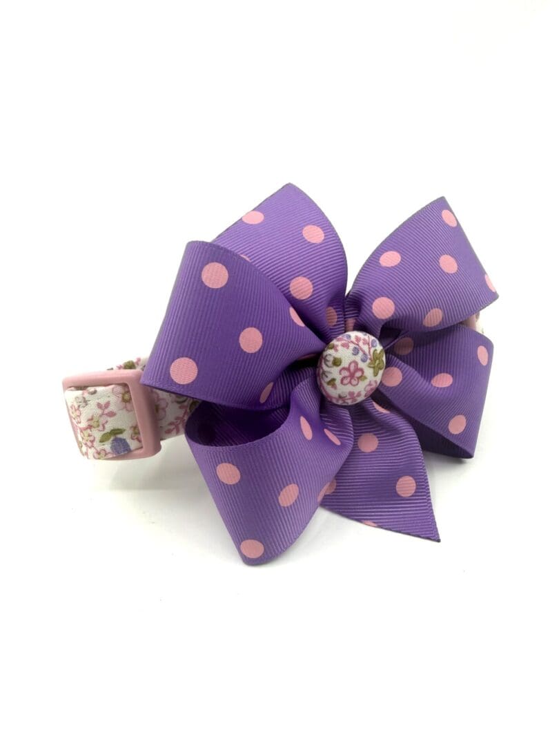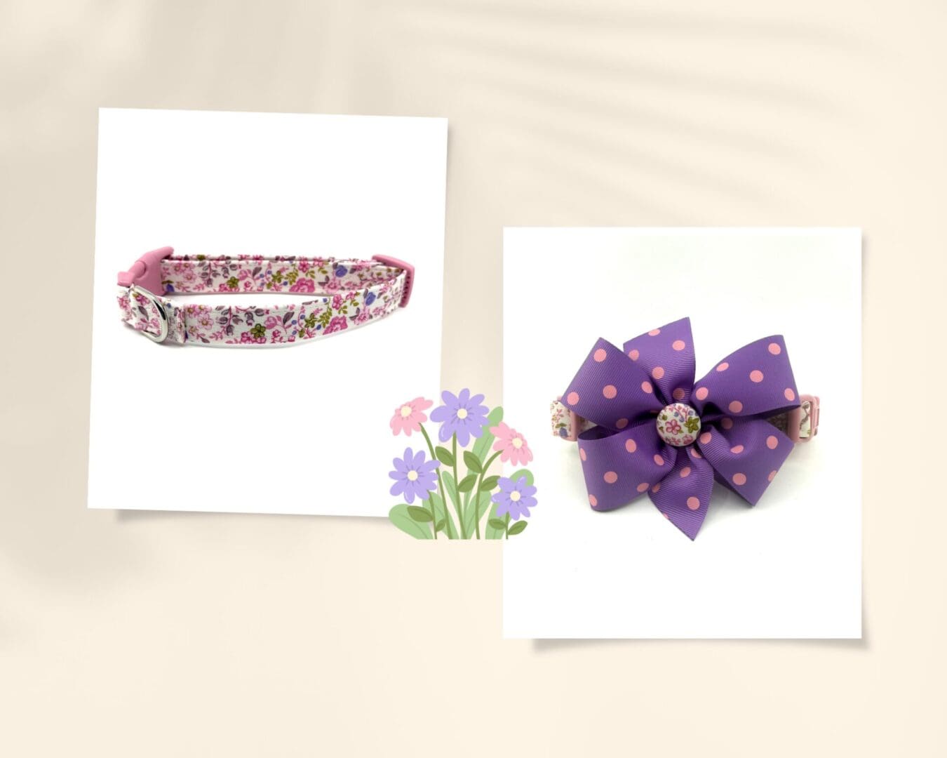 Spring Summer Small Pink Purple Floral Dog Collar- Add on a Removable Purple Pink Polka Dot Bow