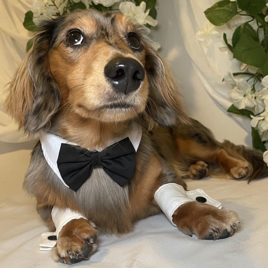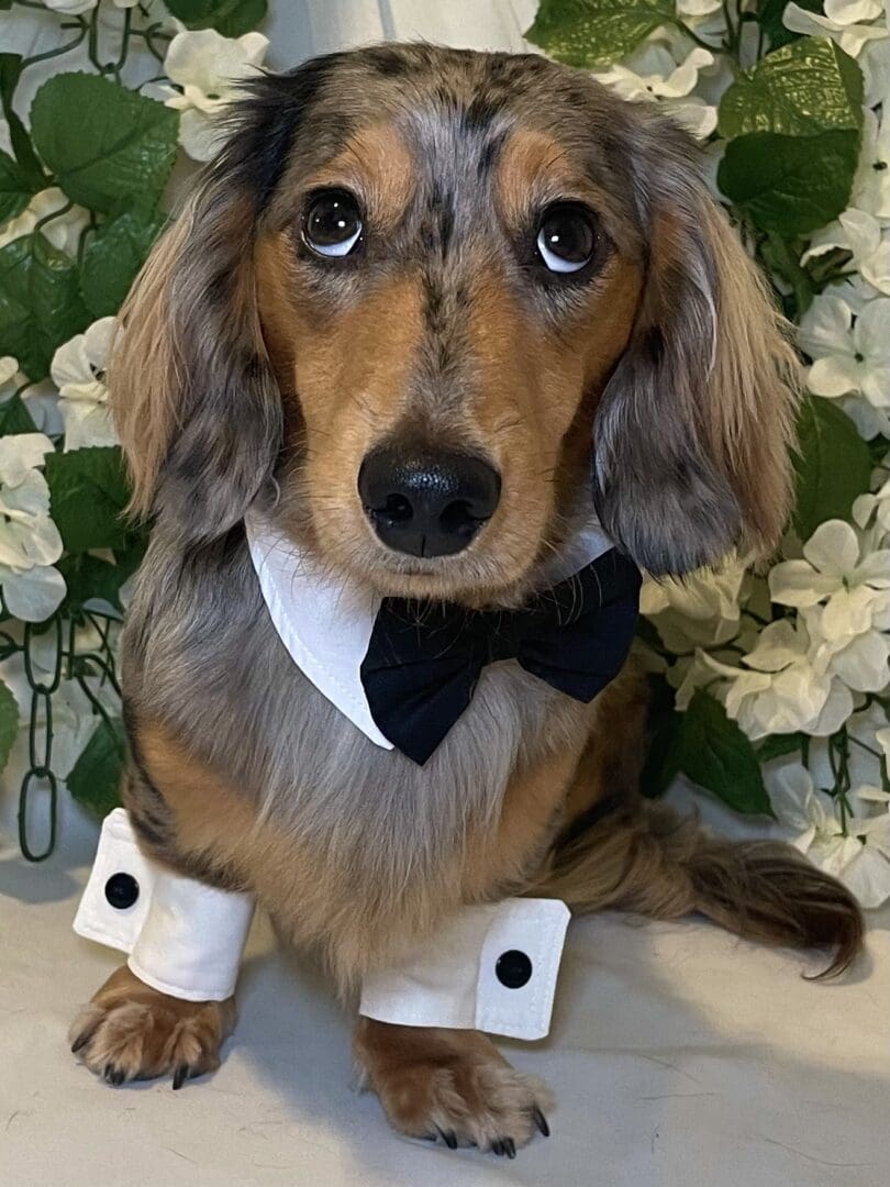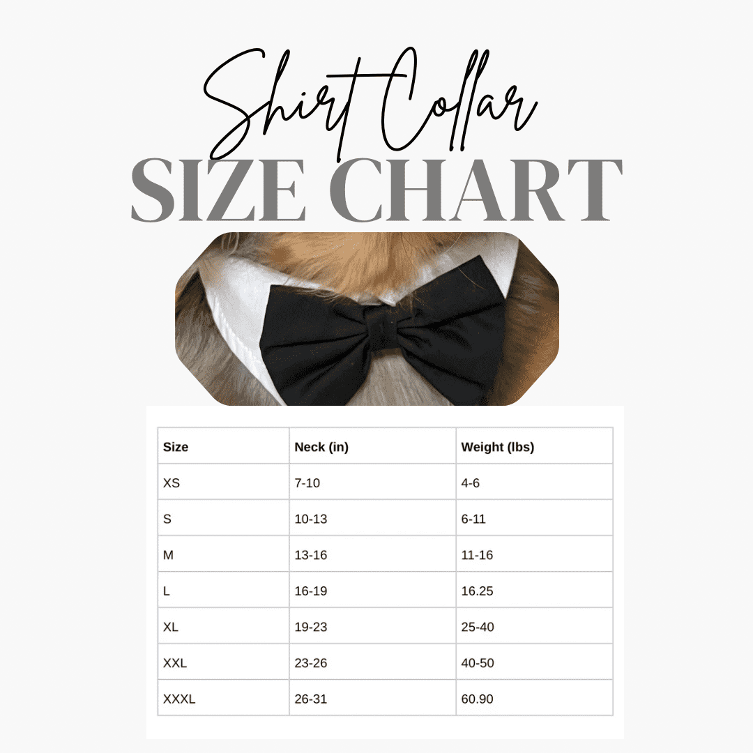 This listing is for a white shirt Dog Collar and Bow Tie set. This cute collar will dress up any pup! Cuffs sold separately.