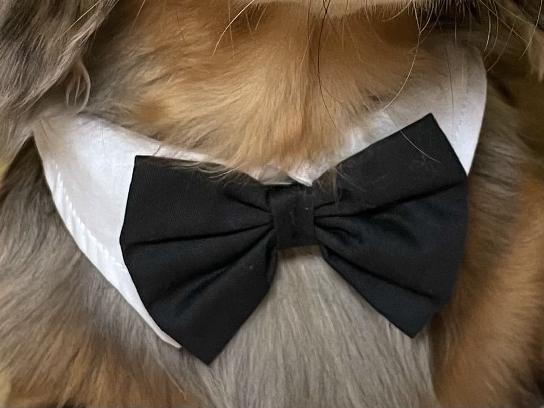 White shirt collar with customizable bow tie, you choose the color, hook and loop closure, variety of sizes